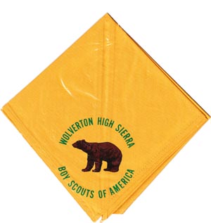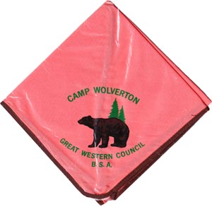 Transition Neckerchiefs - The yellow neckerchief in this photo was issued for the summer of 1972. When it was ordered, Crescent Bay Area Council was merging with the San Fernando Valley Council, and they were not sure of the new Council name, so the words “Boy Scouts of America” were used. The orange neckerchief with the new name “Great Western Council” was issued in either 1973 or 1974. |
