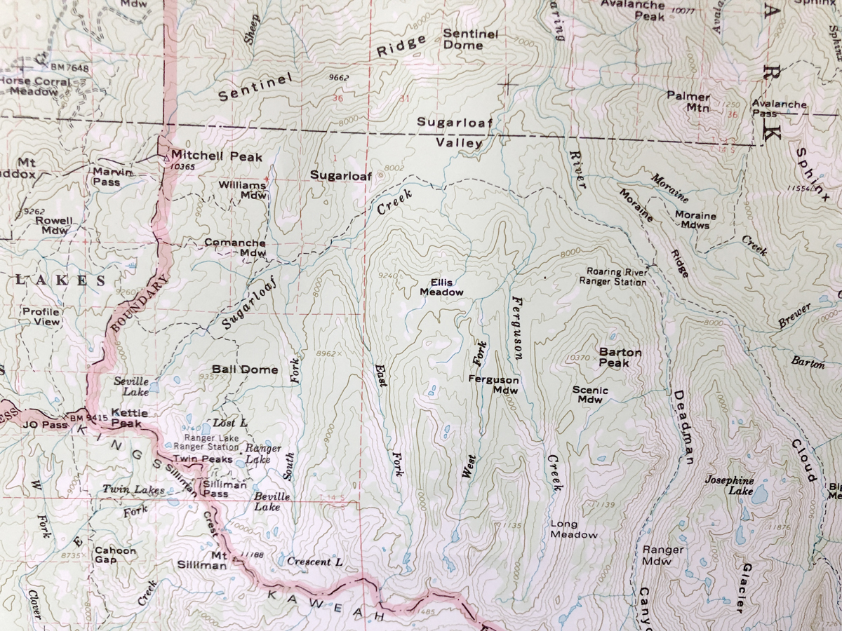 Major points of interest for Lts. West, Lydon, and Long (Marvin Pass, Sugarloaf Valley, Barton Peak, Roaring River, Deadman Canyon)