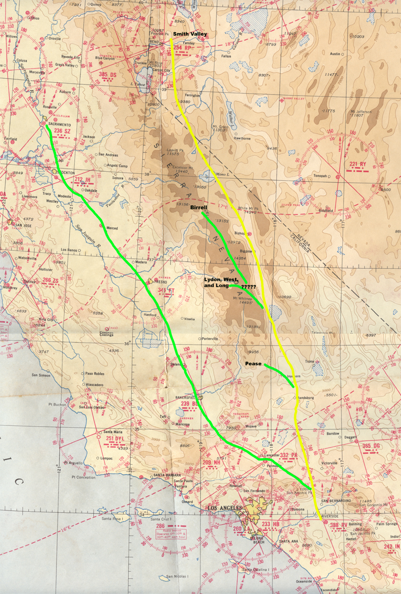 Aeronautical chart, Riverside to Sacramento circa 1942