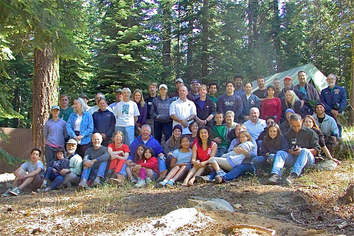 back row l-r Doug Pollock, Lucien Plauzoles, Ed Cunningham, unid man w/cap, Margie Buckingham, Rogan Lynch, unid woman in UCSB, Louie and Ed Schwartz, Ernie Vasquez, Sam Schwartz, Robert Lynch, Chris and Ken Sleeper and Mike Robbins