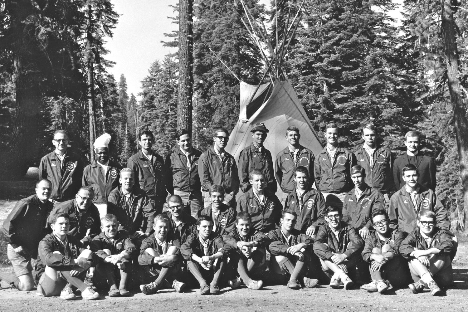 Camp Wolverton Staff - 1964 - front row l-r - Rich Stowell, John Daniels, Dennis Cox, Tom Betts, Mike Call, Lucien Plauzoles, Jack Minassian, Jesse Manibog and Ken McGlynn