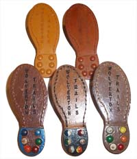 During the 1960’s and 1970’s, campers at Wolverton could purchase a Wolverton Trails hiking boot neckerchief slide at the Camp trading post for about 35 cents. At the end of the week, in the Handicraft area, the Scouts would paint the slide to show the locations they went while backpacking in the backcountry with their troop. Each color on the nail of the boot heal represented a specific location such as Pear Lake or J.O. Pass in the backcountry. Campers (and Staff) who had been on several Wolverton backcountry trips would end up splitting the boot nails into multiple colors. Scouts throughout the Crescent Bay Area Council recognized these neckerchief slides and knew the hiking accomplishments they represented. Shown in the photograph above are two unpainted plastic slides (light color and dark color) as they were delivered by the Neal Slide Company and sold at the Wolverton Trading Post, and three examples of painted slides.