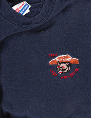 2010 Jacket - The last, or most recent, staff jackets were made for the summer of 2010. These are fleece lined, nylon. The complete design is embroidered directly on the jacket. |