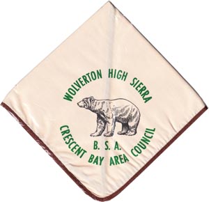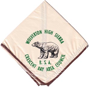 Transition Neckerchiefs - The yellow neckerchief in this photo was issued for the summer of 1972. When it was ordered, Crescent Bay Area Council was merging with the San Fernando Valley Council, and they were not sure of the new Council name, so the words “Boy Scouts of America” were used. The orange neckerchief with the new name “Great Western Council” was issued in either 1973 or 1974. |