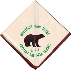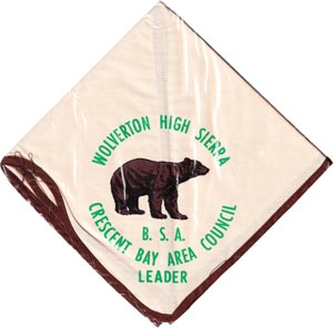 Classic Design Neckerchiefs - This is the last of the classic 1960’s design of the Wolverton neckerchief. These were issued about 1969 or 1970. This is considered the second major grouping of the design because the bear now is black and brown. The bear has also changed directions, symbolizing looking into the future instead of the past. |